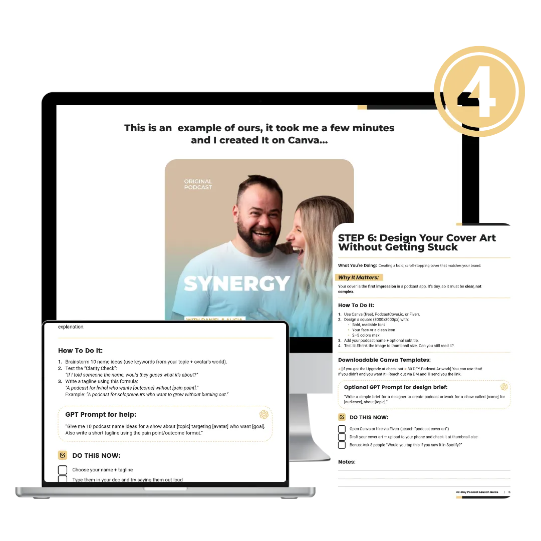 Bonus: Chat GPT Prompts, for show naming, niche clarity and taglines + Canva Art Work Templates