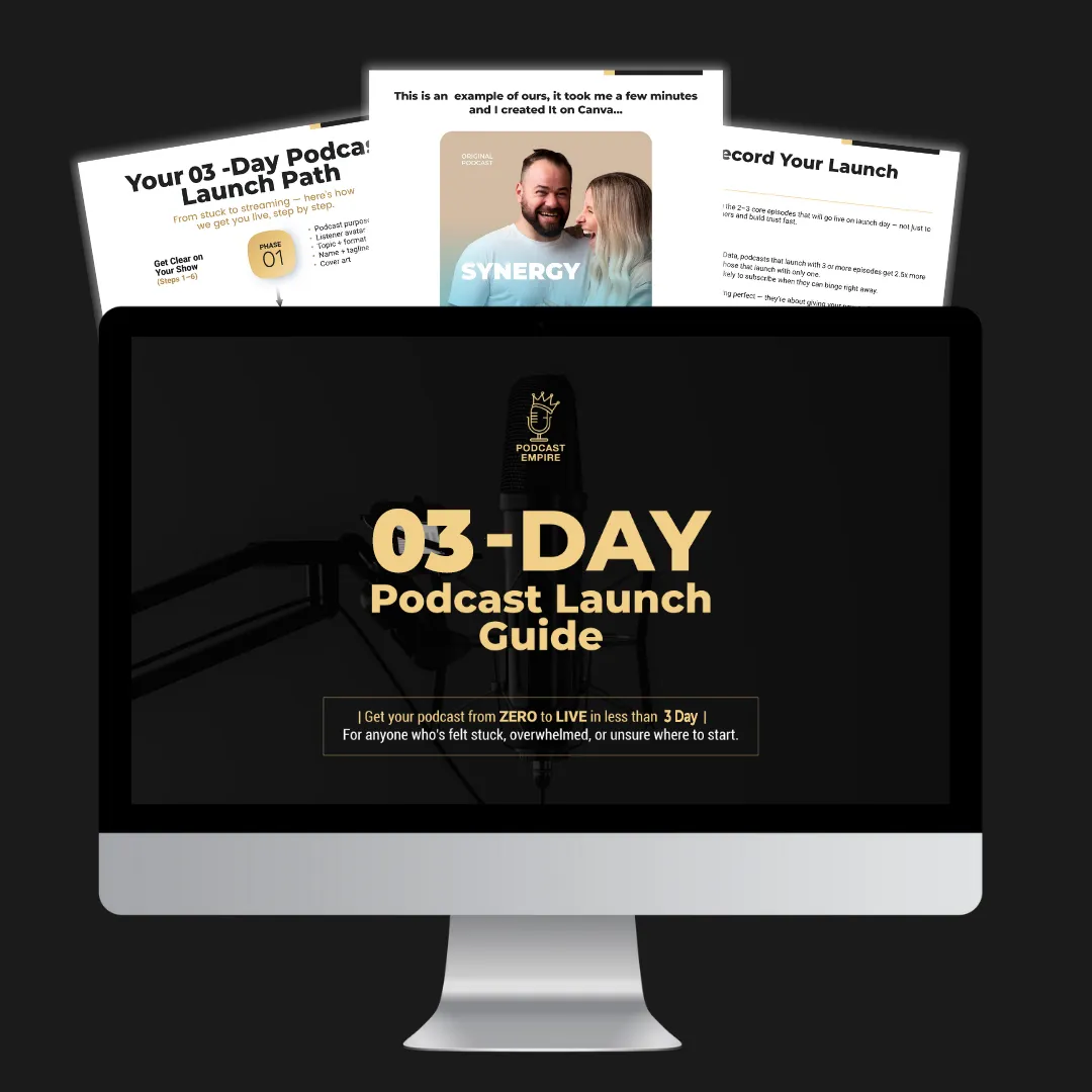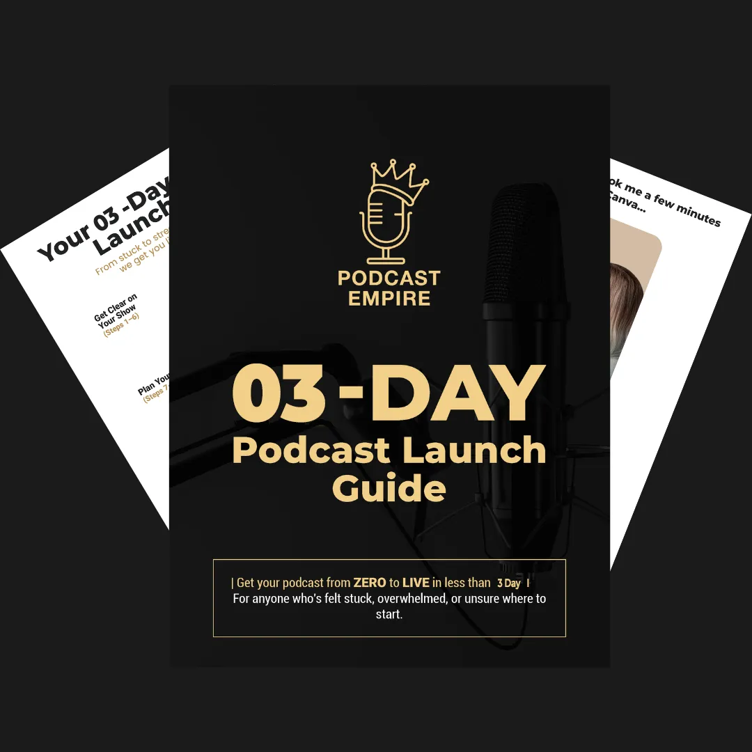 The 3 Day Podcast Launch Guide walks you step-by-step through the exact process to go from idea to a fully launched podcast, even if you have zero experience, no tech skills, and limited time.