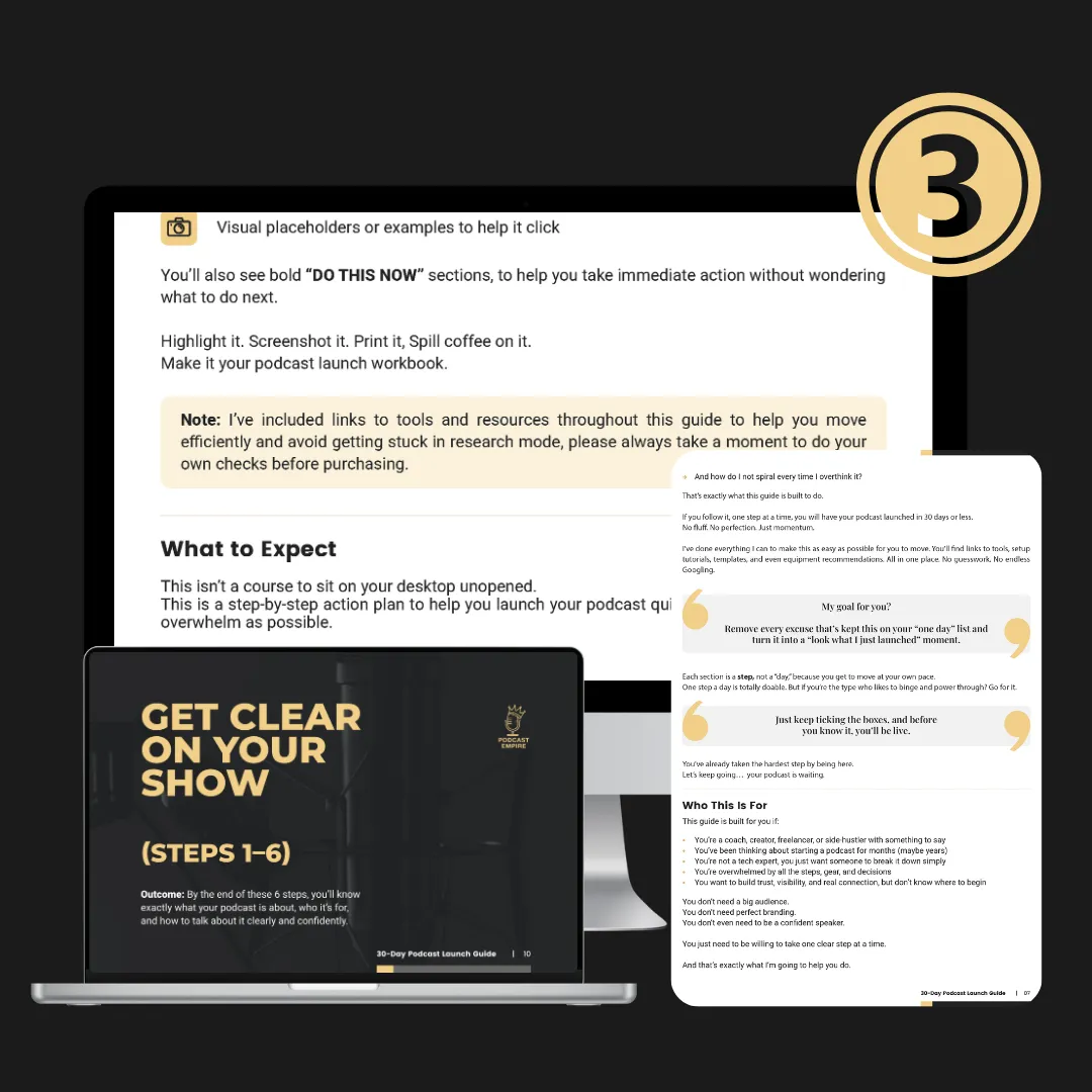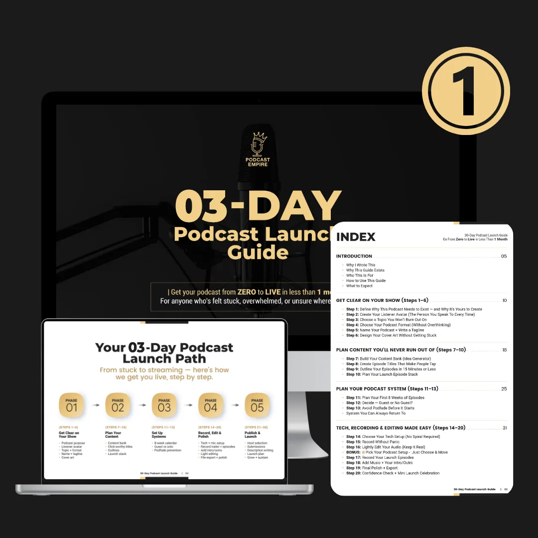 If you’ve spent more time watching tutorials than recording episodes, you’re not alone. This guide turns information into action with one clear step each day. So you launch, not JUST learn..